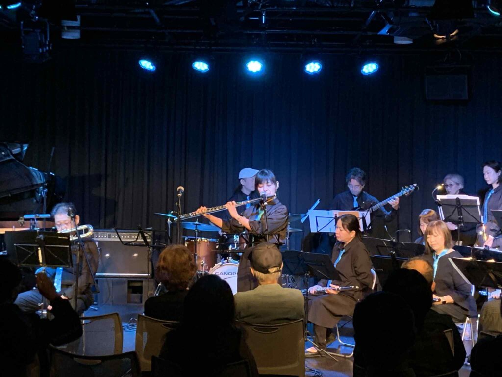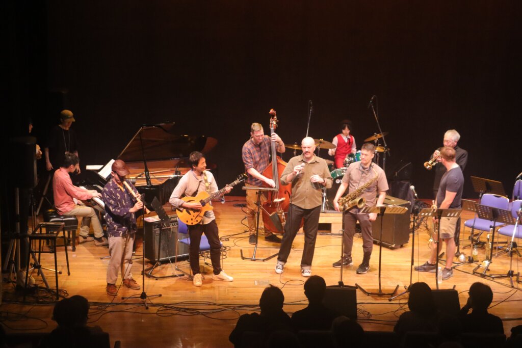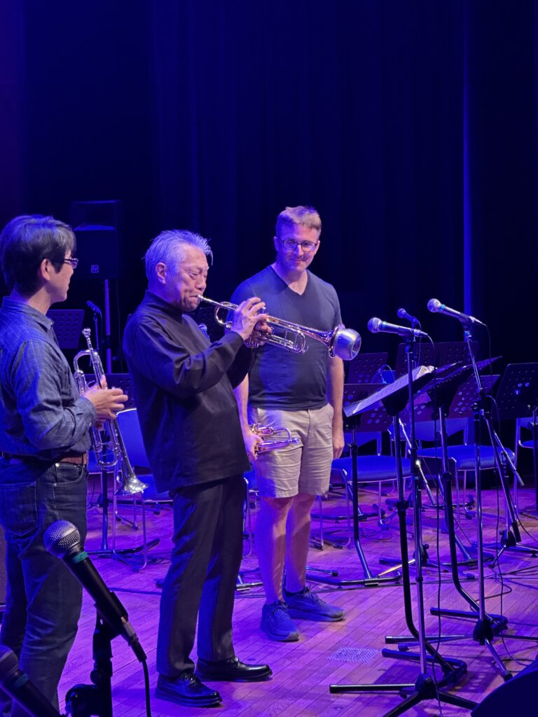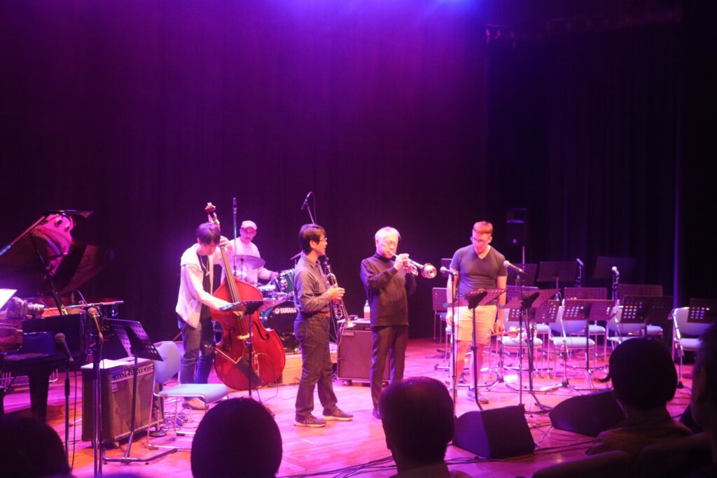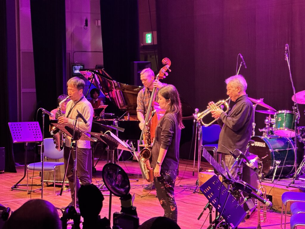 アメリカ政府機関一部閉鎖の影響で公式出演は叶いませんでしたが、なんと米国空軍太平洋音楽隊ファイナルアプローチのメンバー数名が、非番の日に会場へ遊びに来てくださっていたのです。日本のレジェンド・トランペッターである小林正弘さんと、世界を股にかけて活動する「音の外交官」が、八王子の同じステージに立つという、二度と再現できない奇跡的な共演が実現しました!