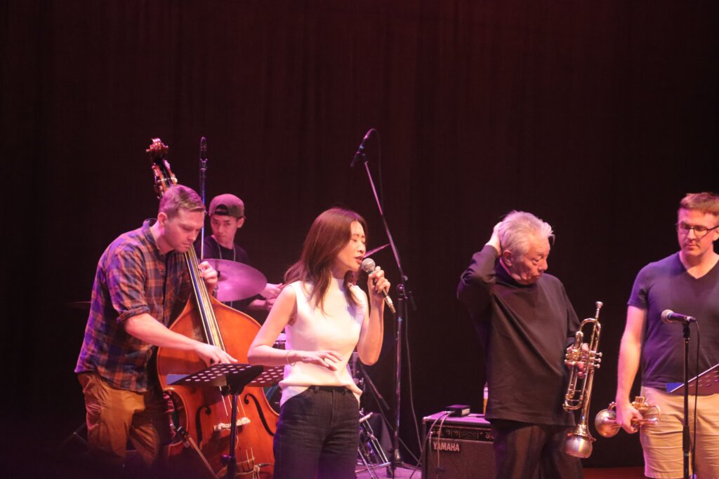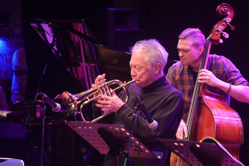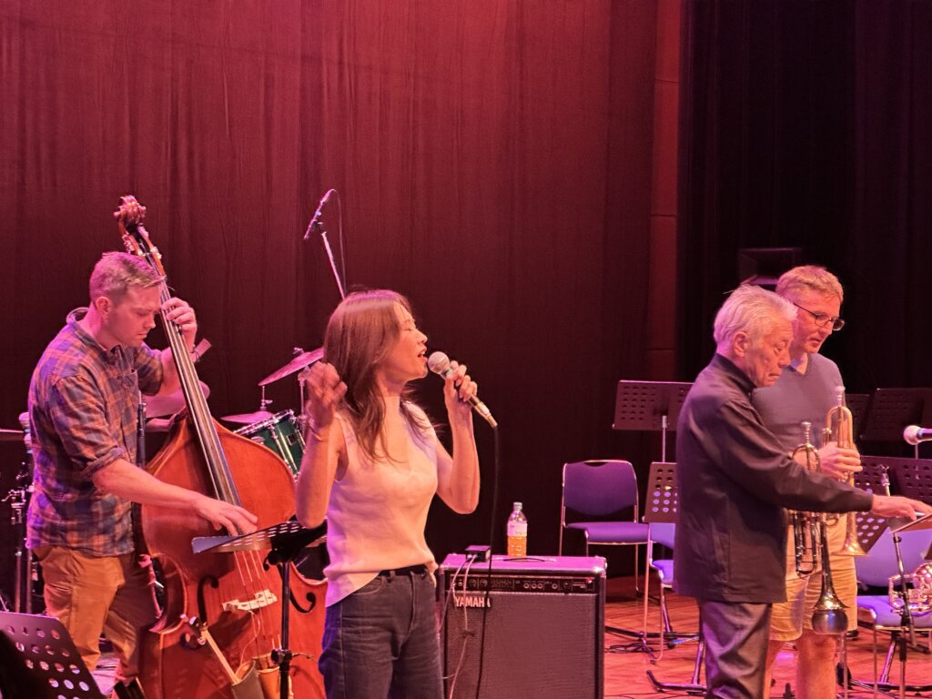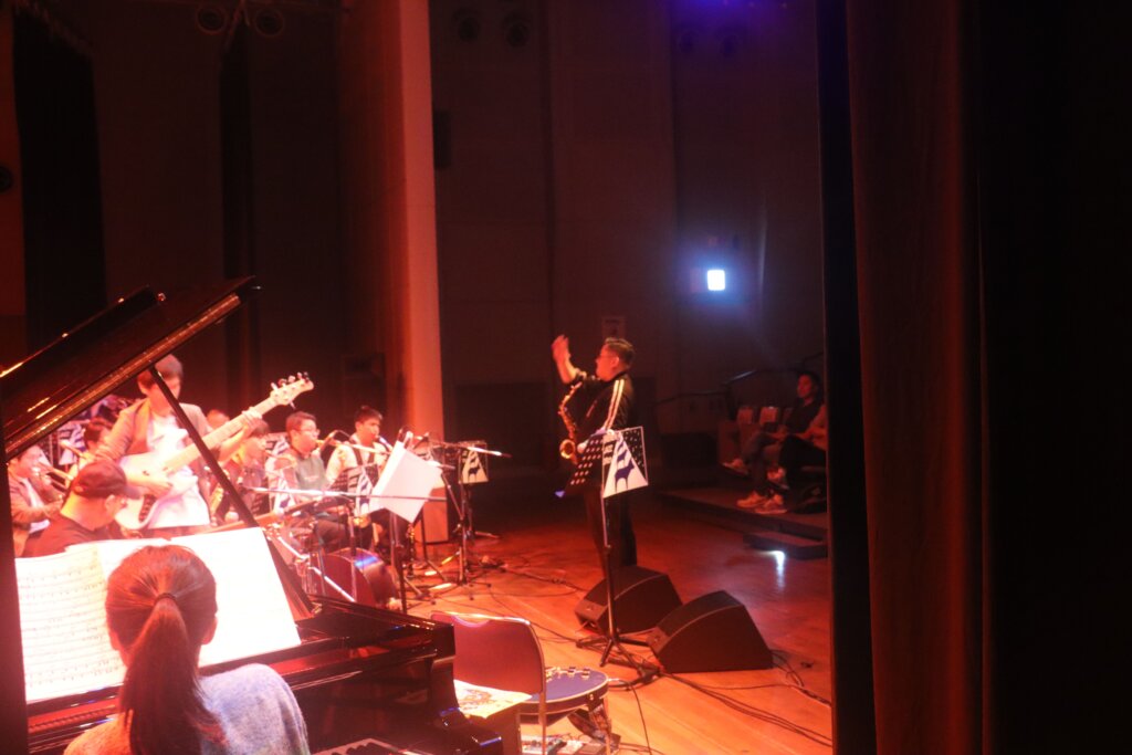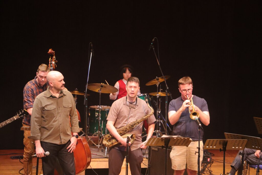 アメリカ政府機関一部閉鎖の影響で公式出演は叶いませんでしたが、なんと米国空軍太平洋音楽隊ファイナルアプローチのメンバー数名が、非番の日に会場へ遊びに来てくださっていたのです。日本のレジェンド・トランペッターである小林正弘さんと、世界を股にかけて活動する「音の外交官」が、八王子の同じステージに立つという、二度と再現できない奇跡的な共演が実現しました!